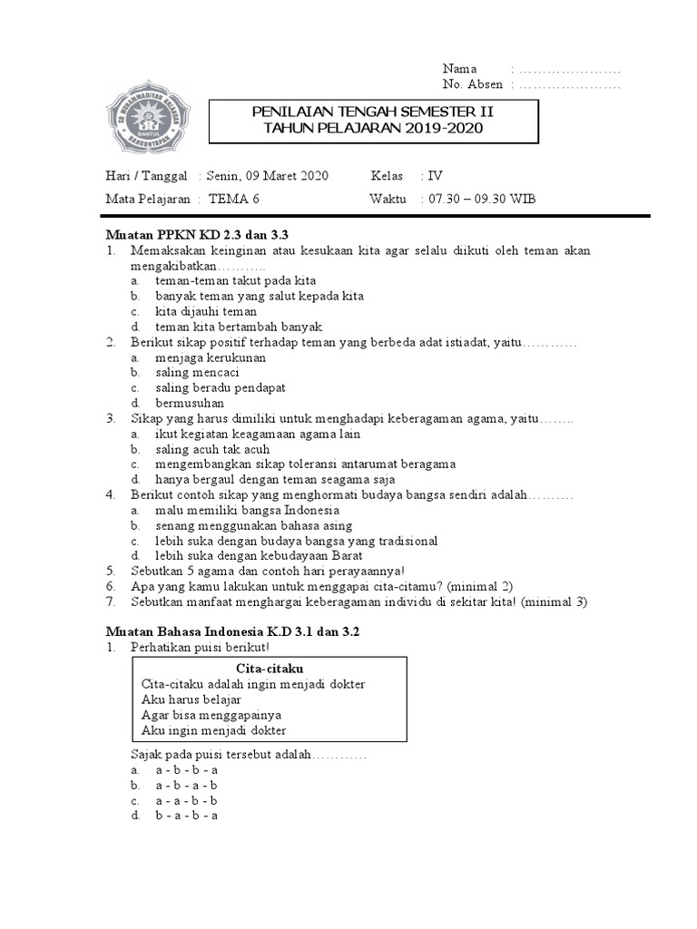 Soal Jawaban Pat Ukk Tema 6 Kelas 4 Sd Mi Tahun 2021 Sinau Thewe Com from 1.bp.blogspot.com Maybe you would like to learn more about one of these? Puisi cita citaku menjadi dokter 2 bait. We did not find results for: Check spelling or type a new query.
